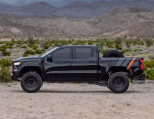 Co-developed with Fox Factory and Baja Kits, it runs a Whipple-supercharged 6.2-litre V8 delivering 700 hp (522 kW) and 868 Nm through a 10-speed automatic and advanced 4WD. Long-travel geometry, FOX Live Valve damping, and race-grade bump stops deliver 14.5 inches of front and 15.5 inches of rear usable travel, while an Ultimate Dana 60 rear axle and ARB air locker provide unstoppable traction. A Borla stainless dual exhaust completes the package.
