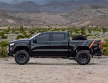 Co-developed with Fox Factory and Baja Kits, it runs a Whipple-supercharged 6.2-litre V8 delivering 700 hp (522 kW) and 868 Nm through a 10-speed automatic and advanced 4WD. Long-travel geometry, FOX Live Valve damping, and race-grade bump stops deliver 14.5 inches of front and 15.5 inches of rear usable travel, while an Ultimate Dana 60 rear axle and ARB air locker provide unstoppable traction. A Borla stainless dual exhaust completes the package.