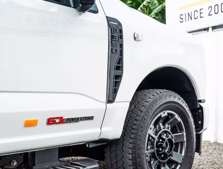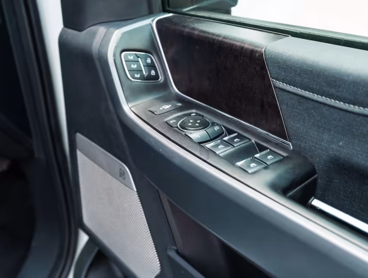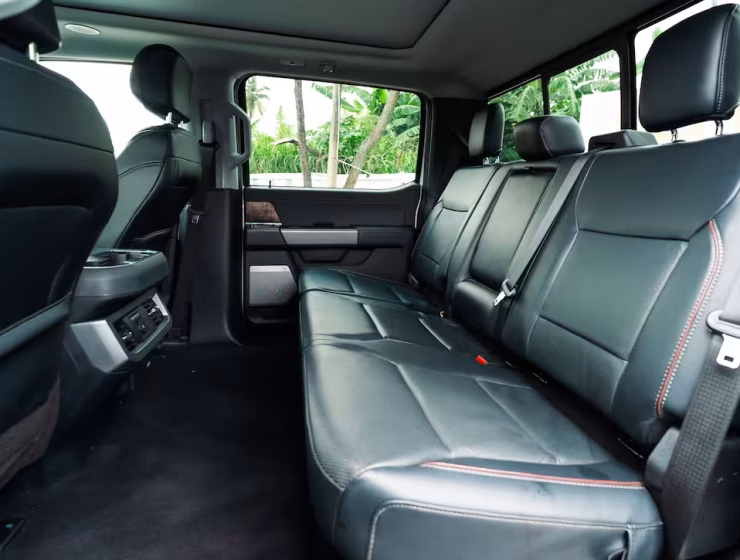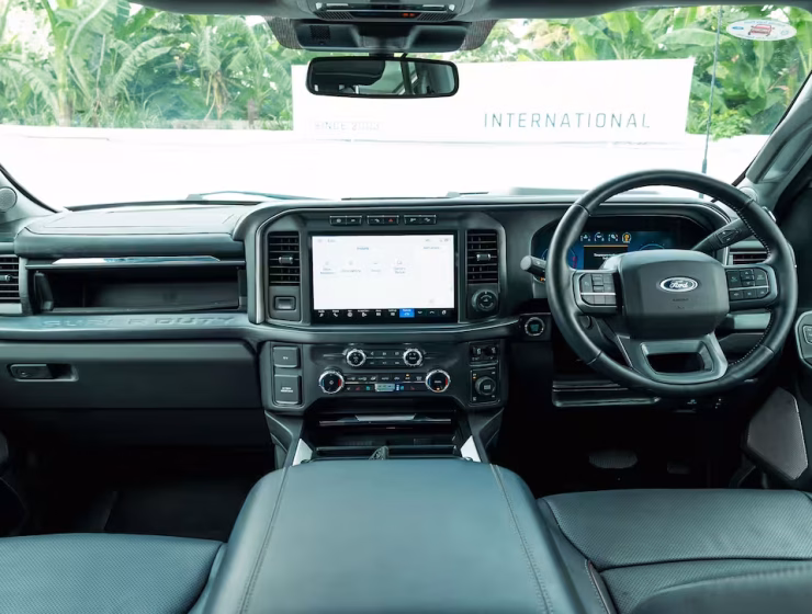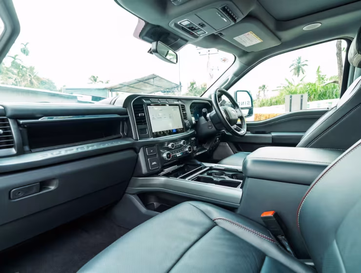 Inside, the cabin balances rugged durability with modern luxury. RECARO® sport seats feature premium leather with Alcantara inserts, complemented by carbon-fibre trim. Tech highlights include SYNC® 4 with 12-inch touchscreen, a 12-inch digital instrument cluster, Head-Up Display, and a B&O® Unleashed 14-speaker audio system. Driver-assist and trail features such as Adaptive Cruise Control, 360-Degree Camera, Trail Control™, Terrain Management System, Pro Trailer Backup Assist, and Pro Trailer Hitch Assist enhance confidence both on-road and off-grid. Practical upgrades include the Twin-Panel Moonroof, Mobile Office Package, Bed Utility Package, a 136 L fuel tank, 4.10 electronic locking rear axle, and 7,500-lb GVWR package.