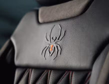 Style is finished to show-car standards straight from the builder. You get body-colour smooth fender flares, Black Widow custom hood vents, a grille replacement with painted accents, and a tailgate spoiler for an aggressive street profile. The factory bumpers and grille are paint-matched for a cohesive, premium look, while Black Widow exterior badging and a windshield header announce its pedigree without shouting. The cabin continues the theme with leather seat covers with red stitching, Black Widow custom-stitched headrests, red LED interior lighting, logo carpeted floor mats, and 50-state legal window tint for a calm, cool cockpit.