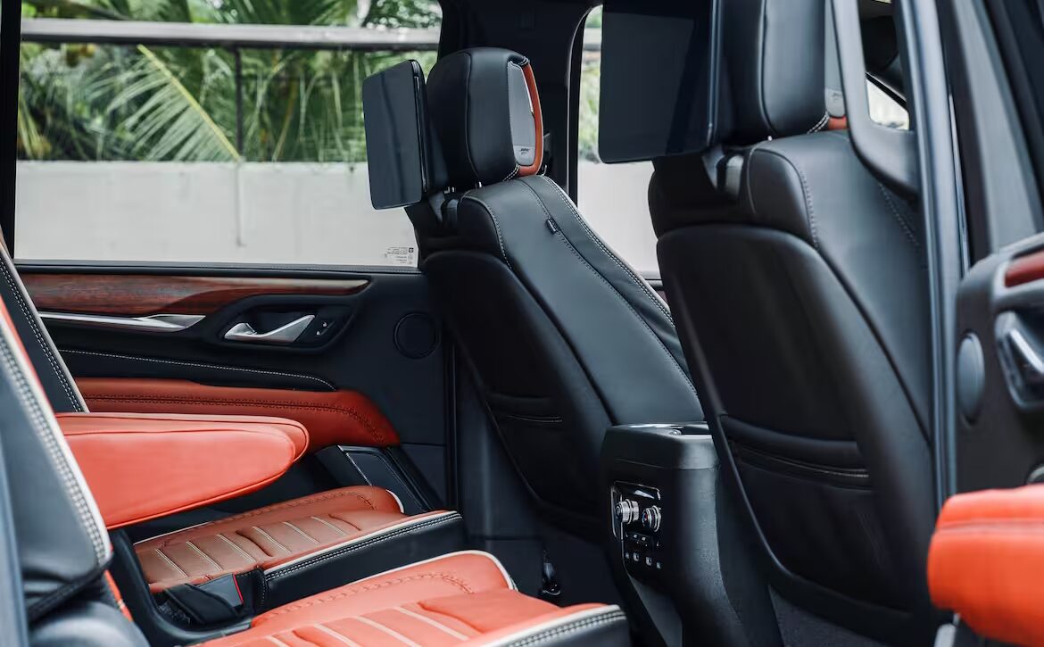 Inside, the Denali Ultimate elevates the Yukon beyond premium SUV territory. The cabin features full grain leather seating in Woodland Mahogany tone with intricate contrast stitching, laser etched topographic detailing, real metal accents and open pore wood trim for a private jet style feel. Both front seats are 16 way adjustable, heated, ventilated and include massage, and the second row captain’s chairs are also heated and ventilated. A dual pane panoramic sunroof opens the entire cabin, tri zone climate control manages every row, and a Bose Performance Series 18 speaker audio system with headrest speakers creates a genuine luxury environment for every occupant. Technology is first class, with a 17.7 inch central infotainment display, wireless Apple CarPlay and Android Auto, HD Surround Vision and up to 13 available camera views including an HD Rear Camera Mirror to assist with reversing, towing and tight manoeuvring. Available rear seat media with dual 12.6 inch HD screens, automatic lane change and trailering support, and Night Vision for identifying pedestrians and animals beyond normal headlamp range all reflect the Denali Ultimate’s position as the flagship of the Yukon line. Core safety systems include Forward Collision Alert, Automatic Emergency Braking, Lane Keep Assist, Front Pedestrian Braking and full perimeter camera coverage to support the driver without distraction.